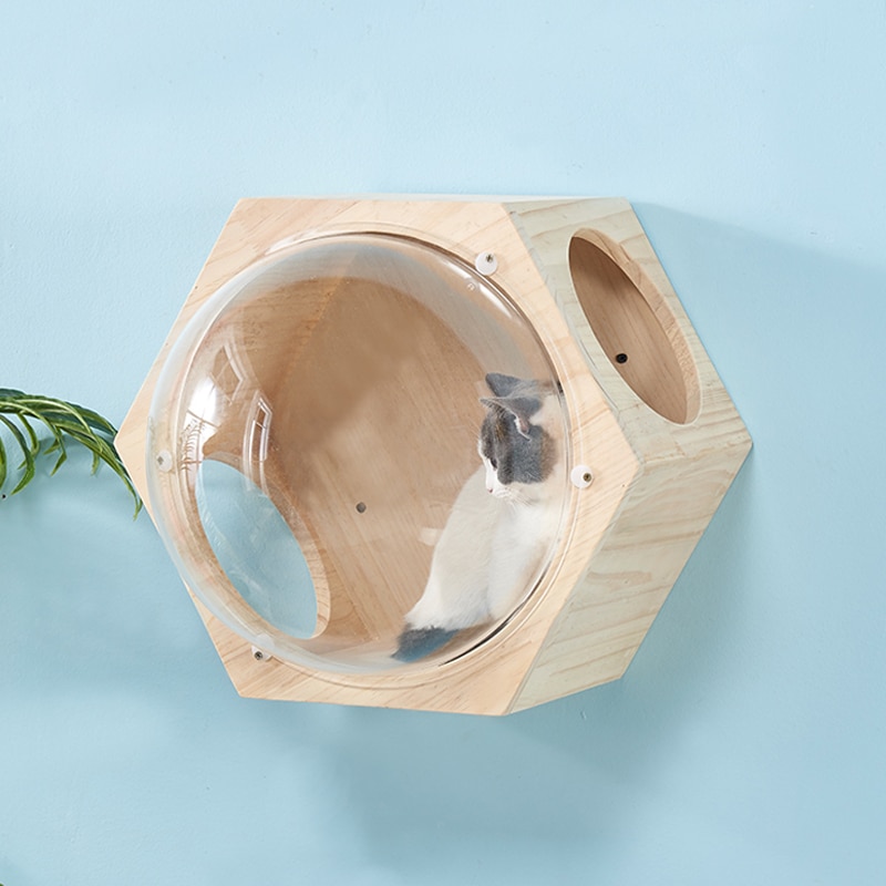 Amazon Com Tardo X Large Transparent Cat House Wall Mounted Wooden Cat Space Capsule Cat Bed Step Pets House Cat Toy Cat Furniture For Indoor Large Cats Pet Supplies