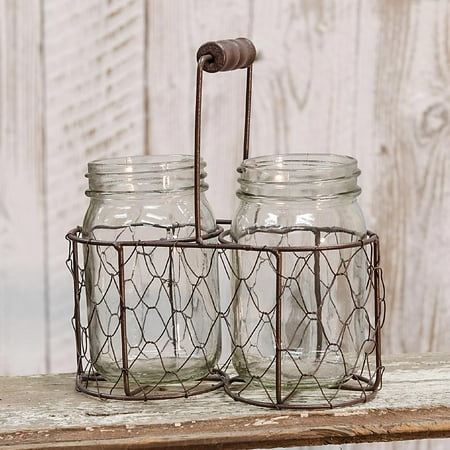 Itll also dress up a mix in a jar. Manoch Rusty Chicken Wire Basket with 2 Small Bottles Material. This single Mason Jar in a Wire Basket with Handle is the perfect place for fresh picked flowers.