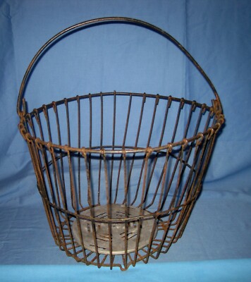 Primitive Antique Early Splint Reeds Gathering Garden Basket Vegetables OR Eggs. All-Purpose Round Oval Basket Gray Iron Wire with Distressed Wood Handle 9 inch. See more ideas about egg basket egg holder wire egg basket.