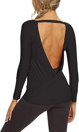 Mippo Open Back Shirts For Women Sexy Long Sleeve Workout Tops Yoga Gym Shirts At Amazon Women S Clothing Store