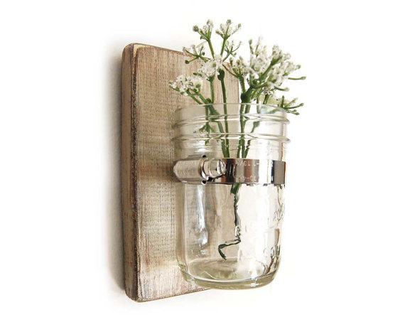 Wallmounted Mason Jar Reclaimed Wood And Mason Jar Mason Jar Candle Holder Mason Jar Vase Reclai Mason Jar Candle Holders Mason Jar Vases Mason Jar Candles